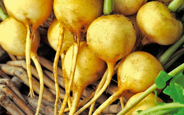 Les racines rouges arrondies atteignent un poids de 15 grammes. La pulpe est tendre, juteuse, au goût neutre, sans amertume. L'inconvénient de ce légume est sa courte durée de conservation. Malheureusement, les racines perdent rapidement leur élasticité et leur goût, deviennent flasques et dégagent de l'amertume.