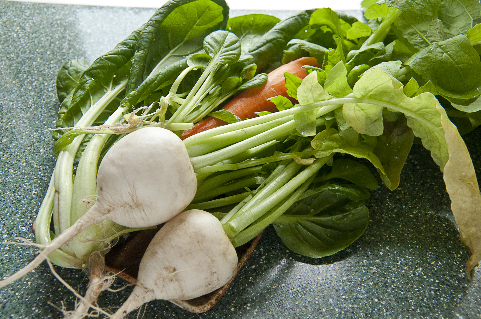 Ne négligez pas la sélection domestique de daikon "Sasha", qui appartient également au radis blanc. Il s'agit d'un hybride à maturité précoce (35-45 jours) avec une haute immunité au froid et aux maladies. Les légumes-racines sont ronds, de couleur blanche, verdâtre sur le dessus, ce qui fait que beaucoup pensent qu'il s'agit d'un navet - le daikon Sasha a vraiment la forme d'un navet, mais son goût n'est pas du tout épicé, mais même sucré.