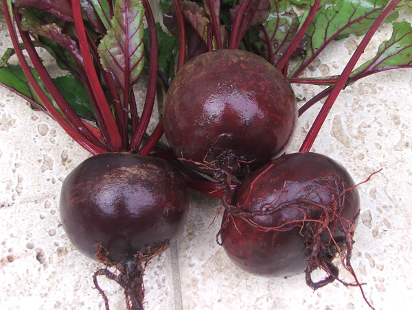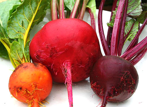 La betterave est riche en variétés. Il est cultivé à la fois à l'échelle industrielle et pour un usage domestique. Les légumes de table ont une seule racine lourde. En couleur, ils sont rose, bordeaux clair, bordeaux vin. Une bonne betterave doit avoir une chair juteuse et ferme, sans peluche ni veines dures. C'est sucré. La betterave est une plante bisannuelle qui produit des sommités abondantes. Les feuilles contiennent de nombreux nutriments. Les tiges ont un goût d'épinard.