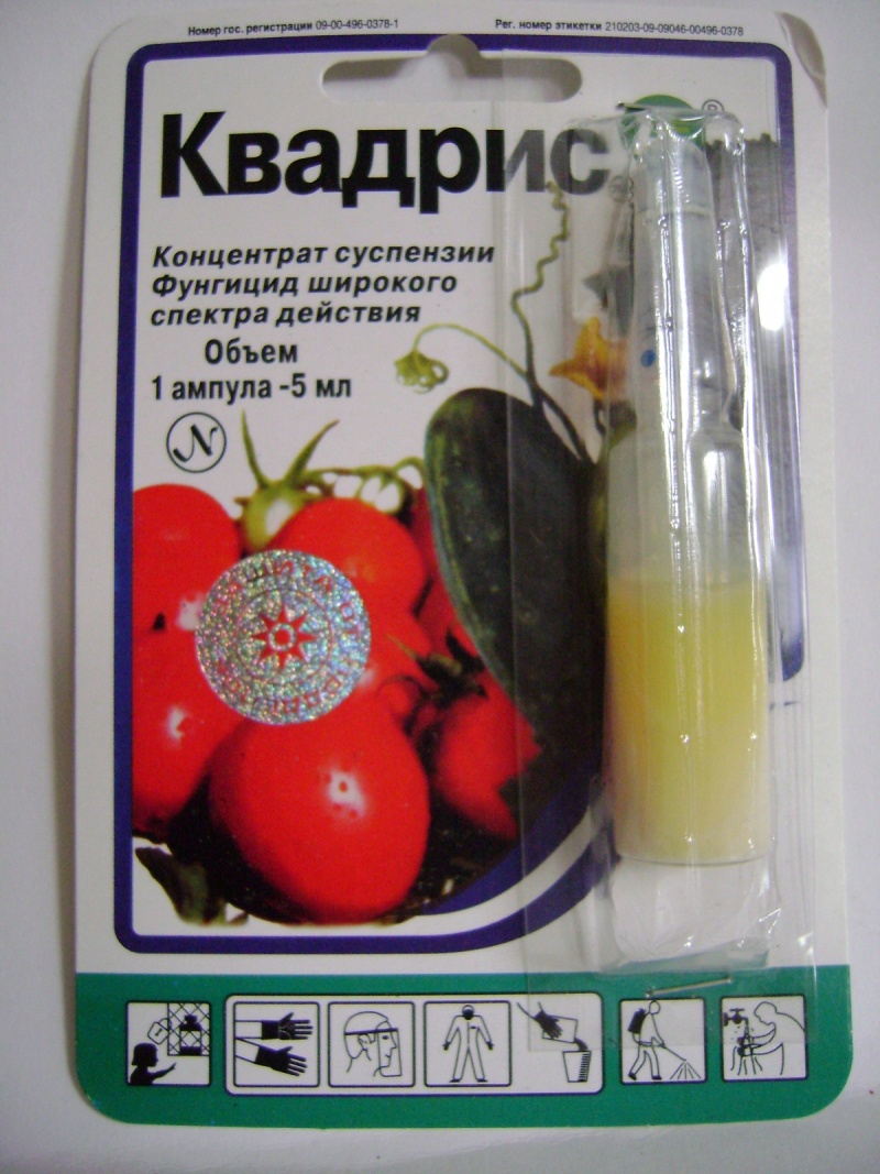 - vous pouvez également utiliser des médicaments prêts à l'emploi achetés: "Oxychoma", "Quadris", "Infinito", "Hom". Dans les magasins, vous pouvez trouver d'autres médicaments - des fongicides, ils diffèrent peu les uns des autres et sont tout aussi efficaces dans la lutte contre le mildiou des tomates.