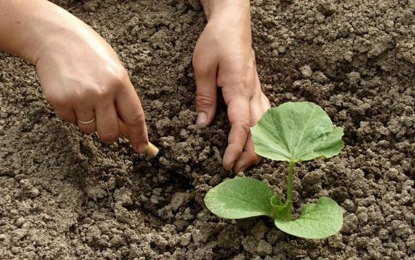 Le semis du matériel de plantation tombe sur la dernière décade de mai ou début juin. Lors de la formation des lits / trous, maintenez une distance de 60 à 70 cm.La graine est plantée de manière à ce que la pousse éclose "regarde" vers le haut.