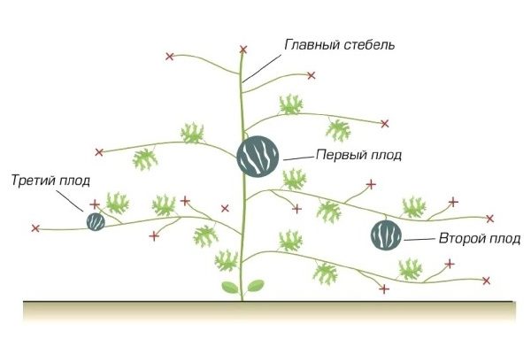 La formation d'une culture contribue à améliorer la production de fruits. Il ne reste pas plus de 2 pousses saines et bien développées sur un buisson. Mais le nombre d'ovaires peut être déterminé à votre discrétion. Lorsque les premiers fruits apparaissent, vous devez arracher les feuilles en excès.