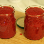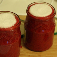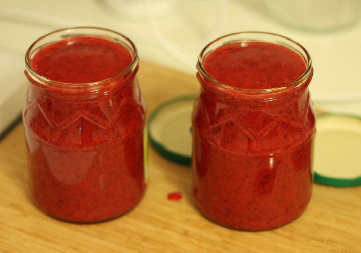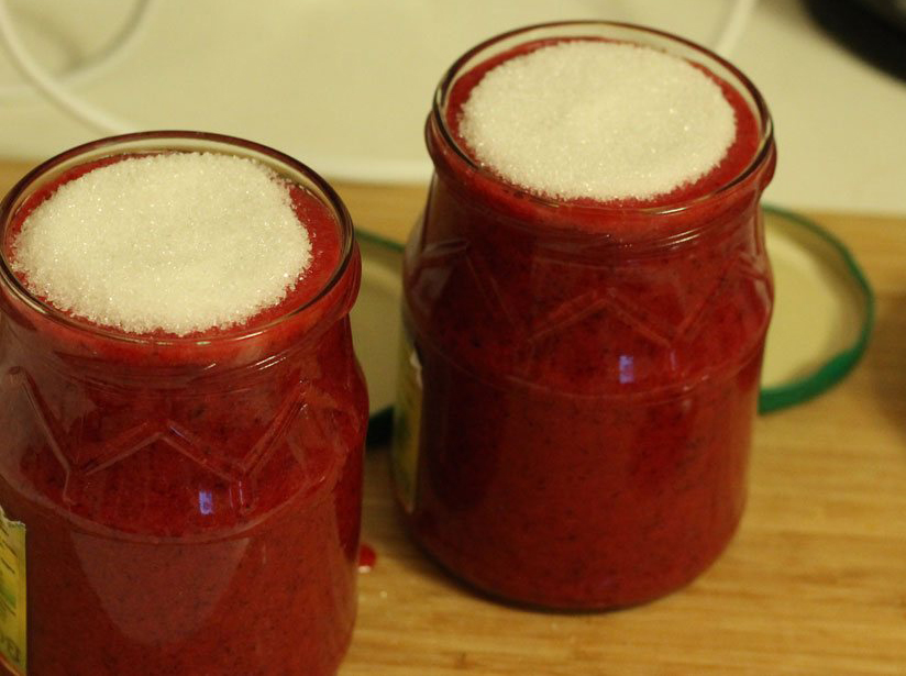 Les baies sont transformées en purée, saupoudrées de sucre cristallisé et envoyées dans une mijoteuse pendant 30 minutes. La masse refroidie est répartie dans des conteneurs et fermée.