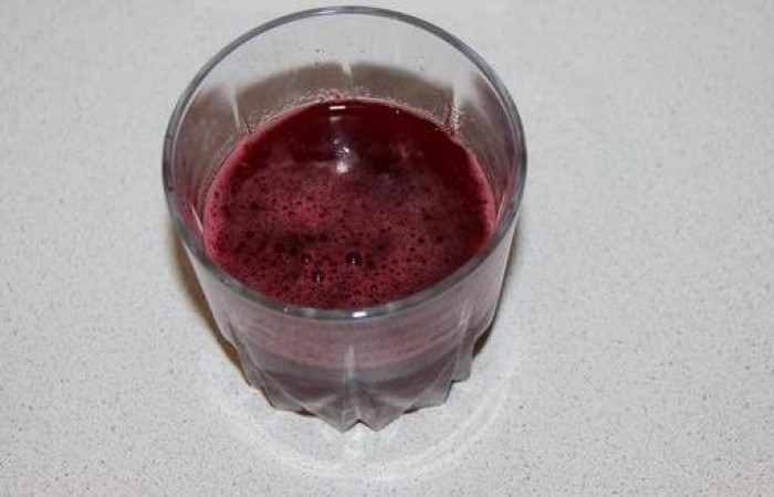 Rincez les baies congelées sous l'eau courante, laissez-les fondre complètement. Tuez dans un mélangeur, ajoutez de l'eau à l'œil, du sucre et du miel. La boisson doit être infusée pendant une heure.