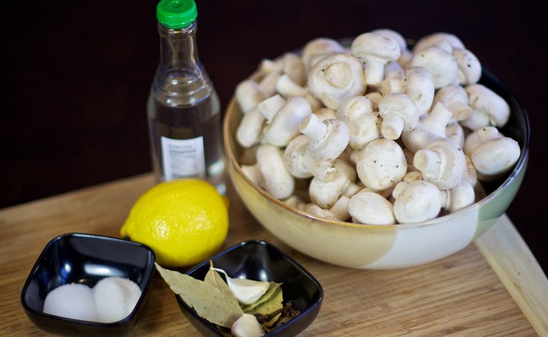 Vous aurez besoin d'un kilo de champignons, de quelques feuilles de laurier, d'une cuillerée de sucre et de sel, de quelques grains de poivre noir, d'un demi-verre de vinaigre et d'un litre d'eau.