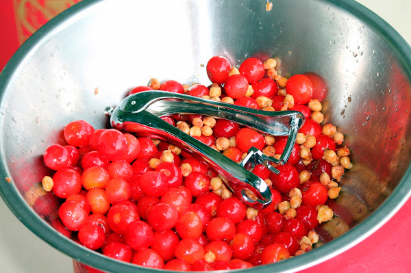 - Ne lavez pas les baies, retirez les graines des cerises.