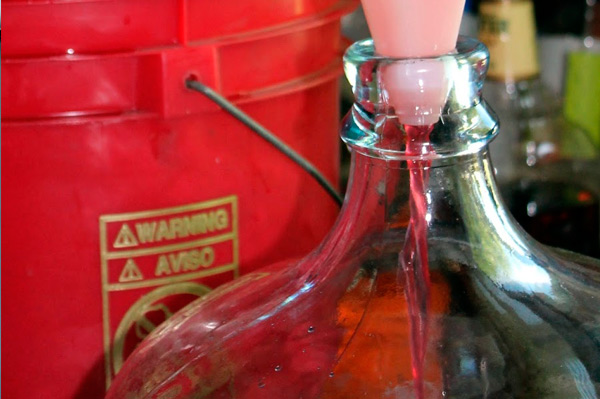 - La boisson est versée dans un récipient propre, transférée dans un endroit plus froid (6-16 ° C). La matière première est périodiquement versée dans un récipient vide à travers un tube.