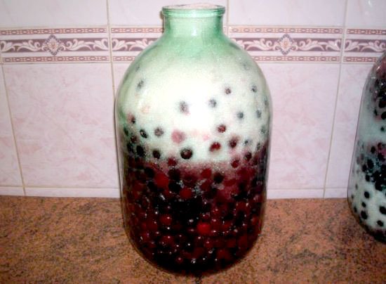 - Les baies sont versées dans un récipient préparé, saupoudrées de sucre cristallisé et placées dans un endroit ensoleillé. Le cou est enveloppé de gaze pour le protéger des insectes. La fermentation dure de 1 à 1,5 mois.