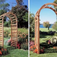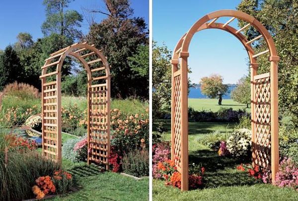 - Lieu. La structure décorative pour le jardin est faite : simple sous forme d'arc d'isolement ; combiner plusieurs modules dans une galerie ; tendu avec des treillis dans l'apparence d'un mur séparant une partie du jardin d'une autre; rassemblés dans une structure fermée à la manière d'un belvédère.