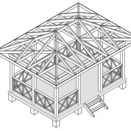 L'apparence du toit dépend entièrement des préférences du propriétaire. Le plus souvent il est fait à pignon ou à croupe, mais si vous le souhaitez, vous pouvez choisir un projet avec un double toit ou faire un toit de style oriental. Quelle que soit la technologie choisie, il est plus facile de construire la charpente d'abord au sol selon les dessins disponibles, puis de soulever la structure finie et de la fixer au harnais supérieur.