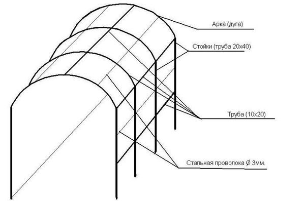 Vous pouvez également utiliser des structures arquées prêtes à l'emploi à partir d'un tuyau profilé, si vous ne souhaitez pas les fabriquer de vos propres mains.