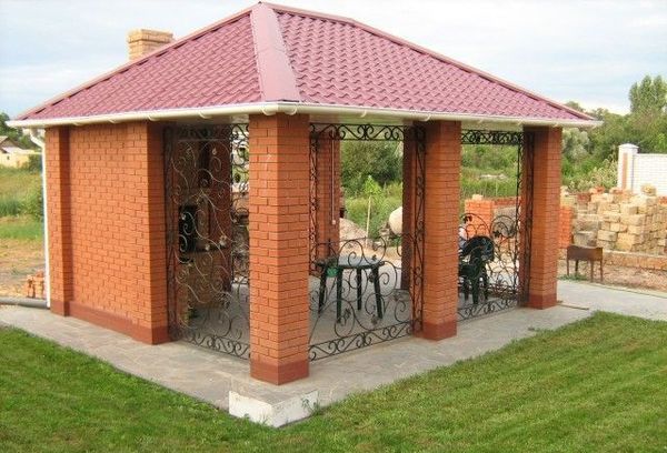 Les structures ouvertes se composent de piliers et d'un toit ; ils peuvent être complétés par des détails forgés ou en pierre. Malgré le fait que ces gazebos soient des structures relativement légères, ils ont toujours besoin d'une fondation. Les structures semi-ouvertes impliquent plusieurs murs fermés (peut-être même vierges) qui peuvent être protégés du vent et de la pluie. Cette option est la plus populaire avec un barbecue ou un four encastrable. Gazebos fermés - les structures de capital, auxquelles toutes les communications peuvent être connectées, peuvent servir d'espace de vie à part entière.