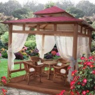 S'il y a peu d'expérience dans la construction, il est recommandé de choisir un gazebo de la bonne forme avec un toit en pente. Les murs doivent également être installés, mais seulement de 2-3 côtés, le reste peut être fermé avec des fenêtres souples. Il est tout à fait possible de construire un tel belvédère en une seule journée, il faudra compter 5 à 6 heures pour assembler le cadre.