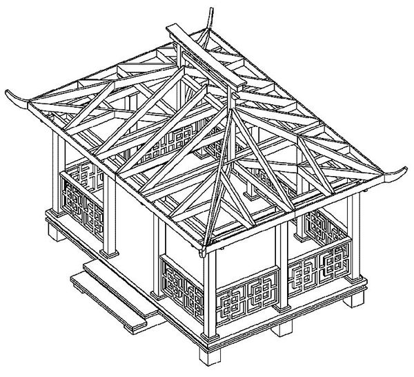 Les niveaux de toit sont montés en posant des planches pré-préparées. L'effet de rehaussement des coins est obtenu en limant les planches installées sur les bords. En leur donnant un peu d'arrondi, il est possible d'obtenir la saveur japonaise recherchée.