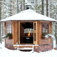 - Le style chalet évoque l'atmosphère des Alpes enneigées. Pour la construction de ces gazebos, des matériaux naturels sont utilisés, principalement de la pierre et du bois. L'intérieur est dominé par des couleurs calmes et naturelles. Pour la décoration, vous pouvez utiliser des bois de cerf, des fleurs sauvages séchées, des produits en bois sculpté.