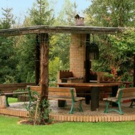 - gazebos extérieurs, qui sont presque une cuisine à part entière en raison de la présence de cheminées intégrées, barbecue.