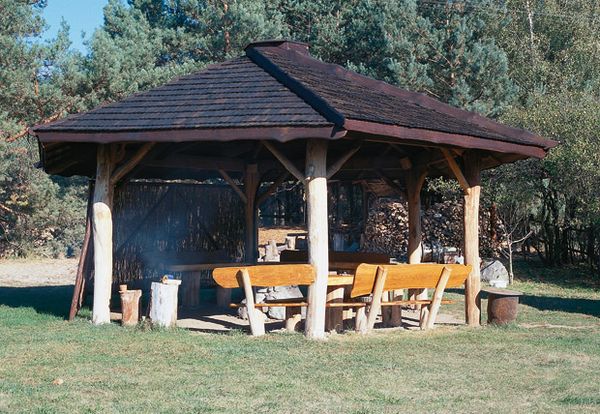 Si la décision est prise d'installer un barbecue dans le gazebo afin de faire frire un barbecue dans la nature, la conception doit être aussi sûre et fiable que possible. Pour cela, une fondation est en train d'être érigée avec l'installation de supports supplémentaires pour un barbecue, un réchaud. Il est préférable de construire des murs en briques ou en bois. Il est impératif d'effectuer au préalable un traitement anti-incendie. Vous pouvez choisir n'importe quelle forme de barbecue, mais il devrait y avoir de petits côtés le long des bords pour soutenir le cadre principal.