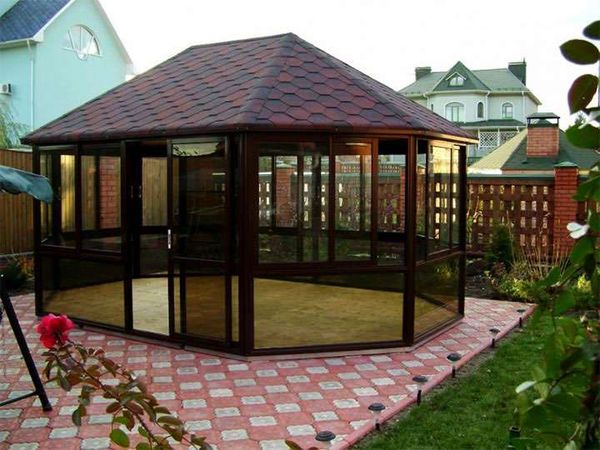 Les structures fermées offrent une meilleure protection contre les précipitations, les courants d'air et les insectes. Afin d'éviter l'effet de serre, il est déconseillé de les assembler à partir de matériaux multicouches à structure alvéolaire. S'il n'y a pas d'autre option, vous devrez utiliser des fenêtres en film plastique amovibles avec du velcro. Selon le type de matières premières, les gazebos peuvent être :