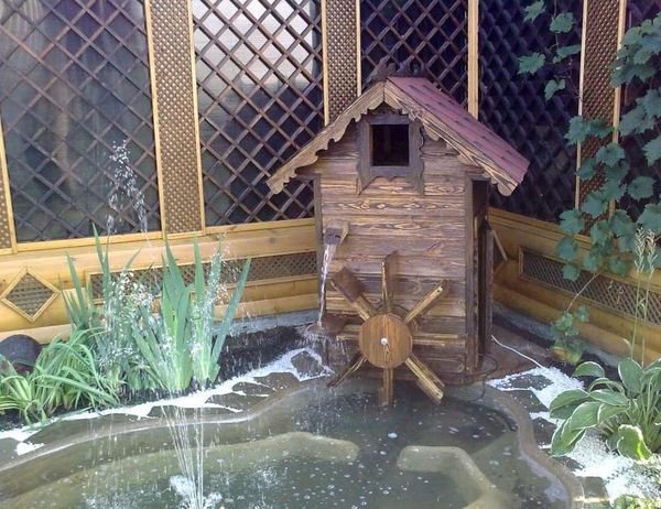 Sinon, le processus d'assemblage d'un moulin avec une cascade n'est pas différent de la construction d'un moulin à vent. Nous installons un moulin à eau sur la rive d'un réservoir décoratif, fournissons la composition avec une petite pompe qui fournira l'eau de l'étang à la roue du moulin. Ce dernier va tourner arbitrairement sous l'influence de l'eau entrant dans les passages de roues.