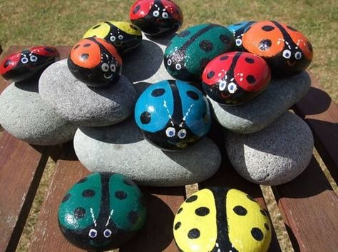 Lorsque l'apprêt sèche bien, un croquis du futur dessin est appliqué sur la surface des galets. Chaque élément est soigneusement peint avec de la peinture acrylique en plusieurs couches. Au dernier stade, il est recommandé de tracer les contours avec des acryliques de noir, de brun foncé ou de gris. Vous pouvez décorer l'image avec des paillettes, de petites étincelles ou des éléments décoratifs. La dernière couche de fixation est une couche de vernis incolore de l'image. Des pierres peintes à l'acrylique peuvent être utilisées pour décorer le jardin. L'acrylique résiste aux rayons UV et aux diverses précipitations atmosphériques.