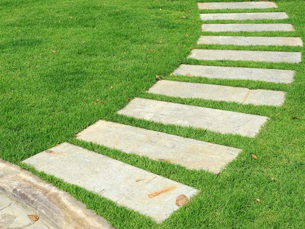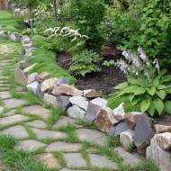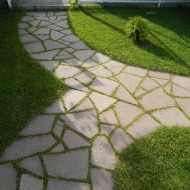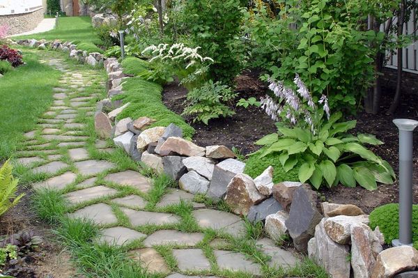 Les chemins de pierre donnent l'apparence de la solidité du site. Le résultat qui en résulte ravira non seulement vous, mais aussi vos petits-enfants.