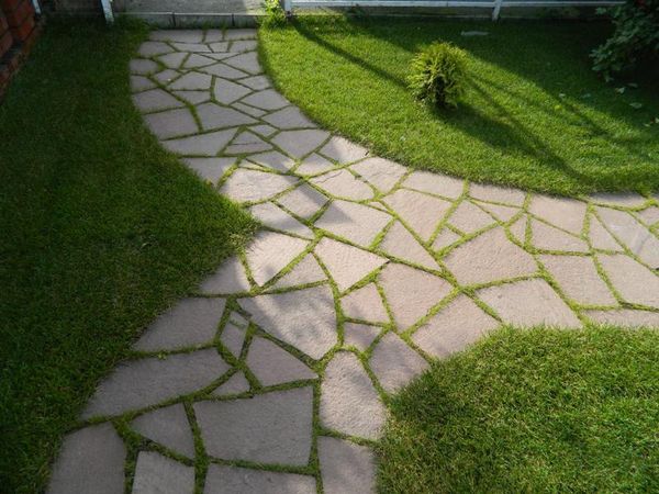 Avant de paver, un plan approximatif des chemins doit être esquissé, comment ils passeront et se connecteront. Ensuite, ils marquent, en cours de route, combien de matériel devra être acheté. La pierre peut être posée avec ou sans mortier de ciment.