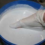 - Une solution de gypse liquide est préparée dans un récipient de taille appropriée.