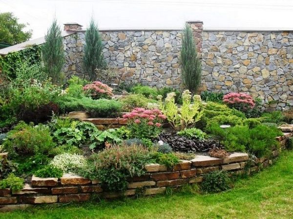 Après pose et remblayage du sol, des cultures sont plantées, choisies à votre goût. Si vous le souhaitez, vous pouvez réellement construire un jardin de rocaille à partir de pneus de roue dans votre chalet d'été, en les utilisant à la place de la pierre. Les pneus peuvent être l'épine dorsale d'un étang et d'une cascade qui peuvent également embellir n'importe quel paysage.