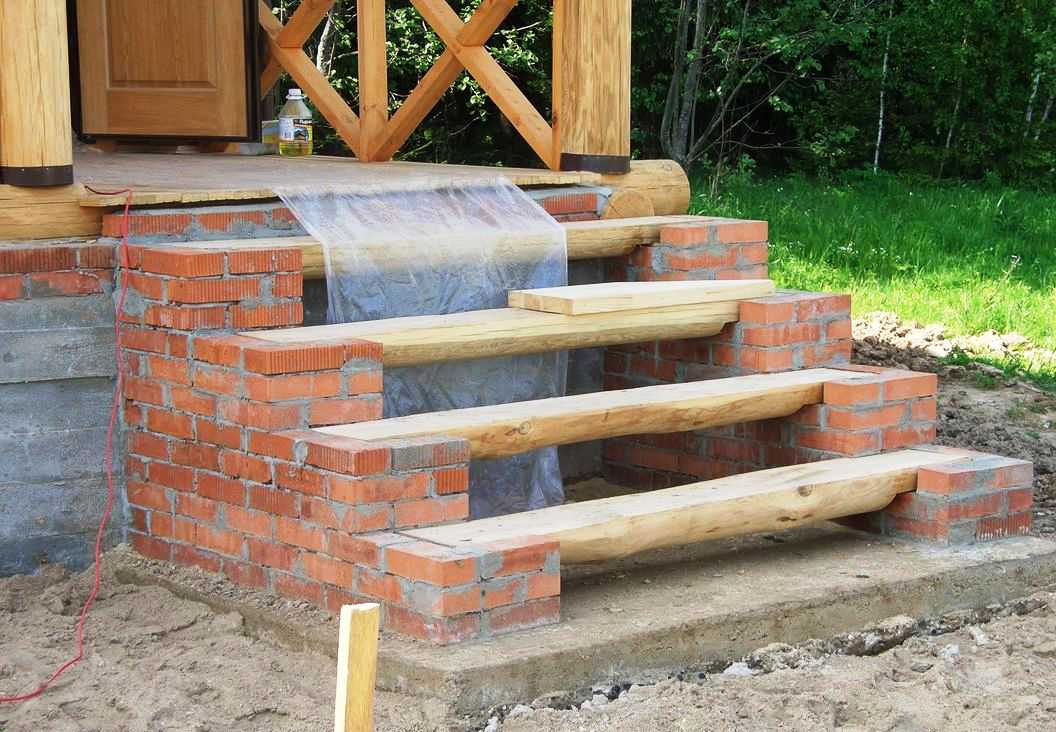 Pour résoudre le problème de l'humidité, vous pouvez fabriquer des marches en bois avec un traitement spécial, fabriquer toute la structure en briques et recouvrir la structure de tuiles de parement ou remplir la boîte d'argile expansée.