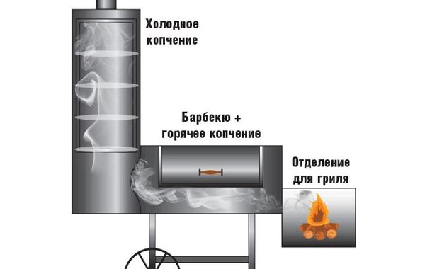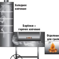 Le fumoir se distingue du barbecue habituel par la présence d'un foyer. Par conséquent, l'étanchéité de la structure est une priorité. Pour créer un tel poêle, vous devez retirer la moitié du fond. Le foyer est formé de tôles de fer. Auparavant, un cylindre différent était utilisé pour cela, mais la conception s'est avérée trop globale. Les pièces sont soudées, une cheminée est équipée. Il suffit de quelques étapes pour transformer un barbecue traditionnel en fumoir. L'essentiel est de s'assurer que le poêle est hermétique et que la cheminée est fiable.