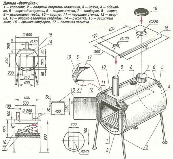 On sait que les barbecues les plus beaux et les plus fiables sont en briques, mais une construction à partir d'une bouteille de gaz, érigée correctement, n'en sera pas moins efficace. En faisant attention à sa décoration, vous obtiendrez une décoration digne d'un chalet d'été à tous.