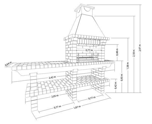 Le pied sur la fondation peut contenir des niches pour stocker le carburant et couper les aliments. Si vous prévoyez d'utiliser le gril quotidiennement, il vaut mieux privilégier les structures fixes avec supports pour chaudrons et éviers. Idéalement, la hauteur du socle, c'est-à-dire la distance du sol à la surface de la cuisine, correspond à la hauteur des propriétaires, et la largeur ne dépasse pas 40 cm. La longueur peut varier de 90 à 120 cm. La profondeur est de 13 cm.
