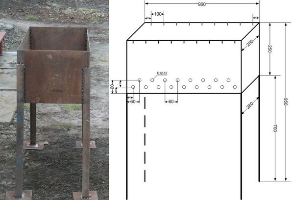 Un brasero élémentaire sans corps peut en effet être constitué de tôles d'épaisseur minimale. Dans l'ouvrage, 4 coins correspondant aux dimensions de l'installation, et des poteaux de support sont utiles. Par beau temps, l'installation ne prend que quelques heures. Les designs faits maison ont l'air assez simples, mais, malheureusement, ils ne contribuent pas à :