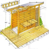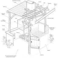 Le plus souvent, les gazebos extérieurs sont construits en bois. Pour les installer, vous n'avez pas besoin de poser les fondations. Le cadre complexe est joué par :