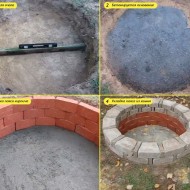 - Le sol du futur bâtiment rond doit être enlevé à une grande profondeur - 40-60 cm.Dans ce cas, le diamètre de la fosse doit dépasser la taille de la maçonnerie intérieure de 7-15 cm.