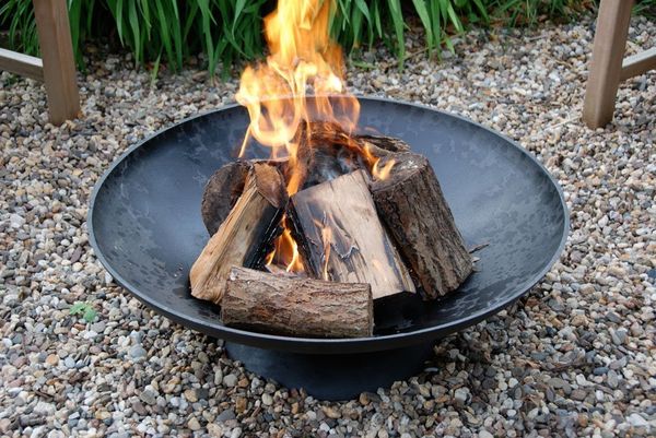 Pour l'autoproduction, vous aurez besoin d'une partie d'une sphère en métal, creuse à l'intérieur. Cette forme est difficile à trouver. Vous pouvez utiliser une feuille de métal d'une épaisseur de 2 à 4 mm, couper un grand cercle, puis couper des bords au centre jusqu'à la moitié de la longueur du rayon et plier les bords à un angle de 20 à 40 °. Vous obtiendrez un bol qui doit être équipé de pieds et placé dans un endroit sûr. Il est recommandé de peindre le produit fini avec une peinture noire ignifuge. Avec peu d'efforts et sans frais, nous obtenons un foyer portable.