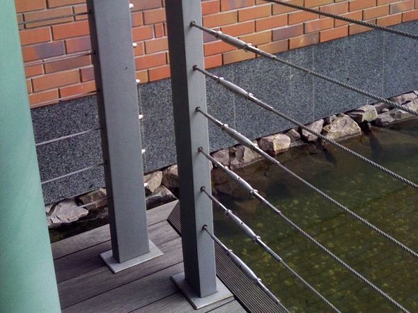 Les balustrades sous forme de câbles ou de cordes métalliques tendus ajouteront une ambiance nautique au pont du bâtiment. Des clôtures en bambou ou roseau rendront la terrasse exotique.