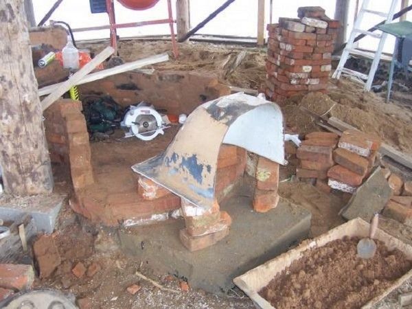 La table de cuisson inférieure peut être carrelée avec un mur de briques. Il doit recouvrir complètement la paroi arrière du foyer et les deux côtés. Si vous le souhaitez, la partie avant du four est également facilement formée, il ne reste que des ouvertures pour les portes. La ligne supérieure de la maçonnerie doit coïncider avec le niveau du compartiment de cuisson, le fond est légèrement plus large que le haut.