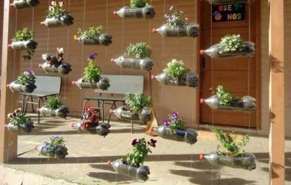 Les contenants en PET font des parterres de fleurs originaux, des clôtures, des mangeoires pour oiseaux et même des chaises de jardin. Le budget minimum du projet est de 850 roubles. Si vous calculez les coûts des mêmes articles achetés en magasin, les économies sont de 55%.