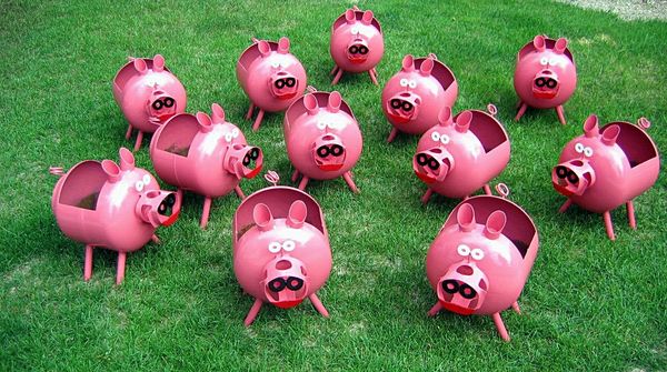 Pour la créativité, vous avez besoin de ciseaux, de ruban adhésif double face, de colle, de fil métallique et d'une mini perceuse. Selon la taille des produits, une embarcation prend de plusieurs heures à plusieurs jours. Les projets à plus grande échelle qui combinent quelques dizaines d'éléments décoratifs nécessitent une préparation préalable des contenants en PET. Ceux-ci peuvent être des bouteilles de soda ordinaires de 1,5 litre et sont le meilleur choix pour faire des agneaux, des tigres, des grenouilles et des chatons. Les récipients de cinq litres conviennent mieux aux pots de fleurs et aux parterres de fleurs. Si vous devez assembler une figure humaine avec vos mains, vous aurez certainement besoin de seaux ou de bidons en plastique d'une capacité de 20 litres.