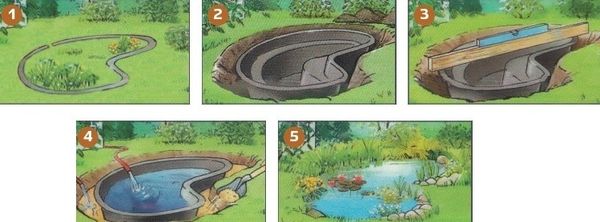 - Une ébauche du futur étang est en cours d'élaboration sur papier. Il prend en compte la taille et la profondeur du réservoir, la largeur de tous les étages de la structure (pour les plantes côtières et peu profondes, pour les poissons), ainsi que la finition décorative de la composition de l'eau.