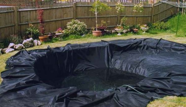 Cette option est utilisée pour les petits bassins décoratifs. Un film PVC ou un film de caoutchouc butyle d'une épaisseur d'au moins 0,5 mm est acheté - sa résistance pour un réservoir artificiel suffira amplement.