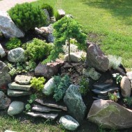 Jardin de roches – c'est une zone remplie de pierres à un ou plusieurs niveaux, avec des plantes poussant entre les deux. Un tel toboggan peut être aussi impressionnant (1,5–2 m de haut) et miniature (total 40–50cm).