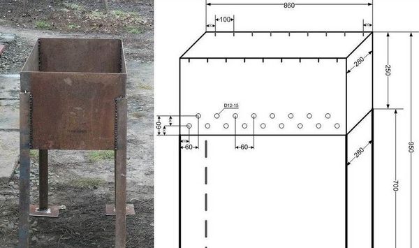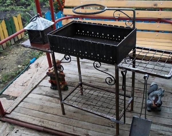 Quelle devrait être la hauteur de toute la structure, y compris les jambes? Dans la plupart des cas, 1 mètre est considéré comme la norme - il sera pratique de cuisiner à ce niveau, vous n'aurez pas besoin de vous accroupir ou de vous pencher sur le brasier lorsque vous tournez les brochettes, et vos mains ne vous feront pas mal non plus. En conséquence, la hauteur des jambes est de 80 à 85 cm.