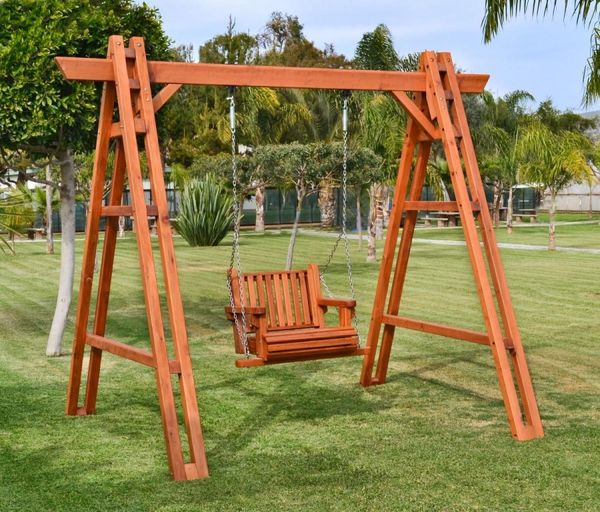 Structurellement, la balançoire se compose d'un cadre de support : deux parois latérales triangulaires et une barre transversale supérieure. Un banc de largeur appropriée est suspendu à la traverse sur des câbles ou des chaînes. Considérons plusieurs façons de créer un cadre.