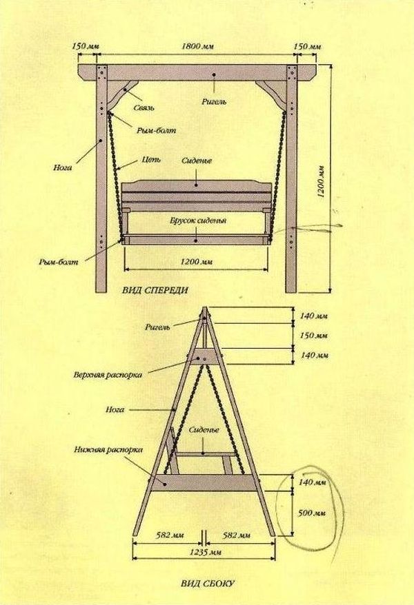 Balançoire de jardin bricolage: dessin et instructions étape par étape