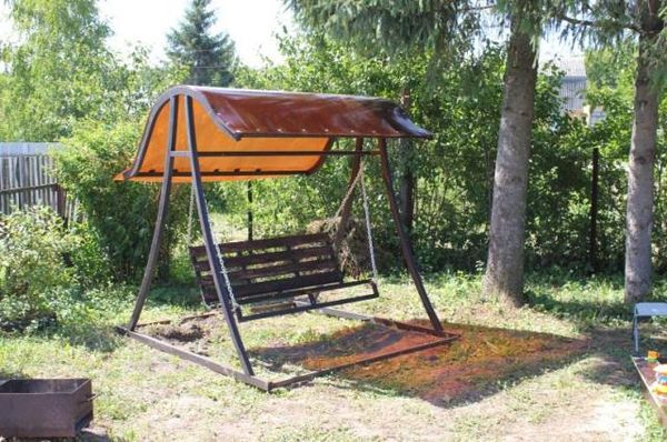 Si vous assemblez une balançoire en métal, les mêmes tubes profilés doivent être pris comme base pour le cadre, mais le banc lui-même est toujours en bois.