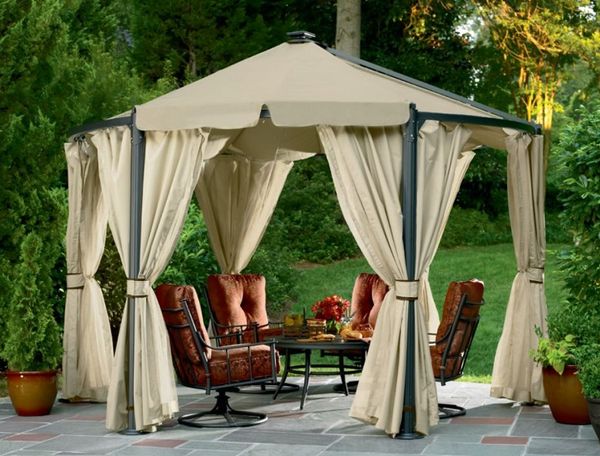 Un choix judicieux de produits dépend souvent de l'emplacement des dépendances, de leur quadrature et des caractéristiques des idées de conception. Par exemple, le lin respirant et en même temps dense est idéal pour les gazebos ouverts et semi-fermés allant de 7 à 10 mètres carrés. m. Le tissu est pratiquement imperméable à l'eau, facile à nettoyer et n'absorbe pas les odeurs de nourriture.