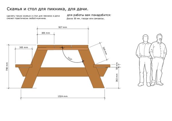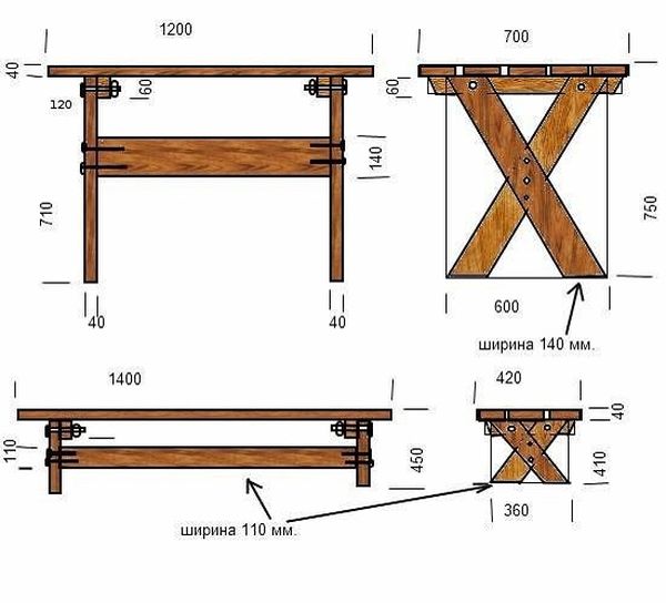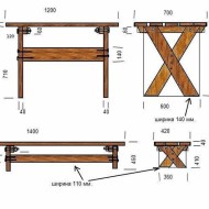 - Trouvez un dessin approprié qui indique les pièces nécessaires. La taille de la table est choisie en fonction des besoins futurs et de la surface du gazebo à laquelle elle est destinée. La hauteur optimale est de 80 cm.