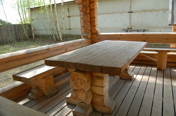 À partir d'une longue bûche épaisse, par exemple, vous pouvez découper des bancs et construire une table. Certes, une telle structure ne peut pas être traînée dans le belvédère, mais elle aura fière allure sur la pelouse du jardin.